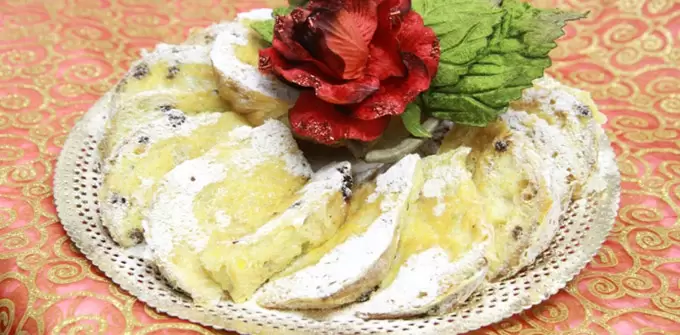Em uma panela, misture o amido de milho, o leite, as gemas e o açúcar de confeiteiro, leve ao fogo até engrossar. Adicione as castanhas e os damascos, deixe esfriar..